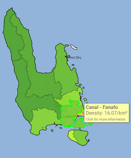 The Canal Fanafo Area Council has 52 Communities and has about 9,000 in population, it has five Community Councils.