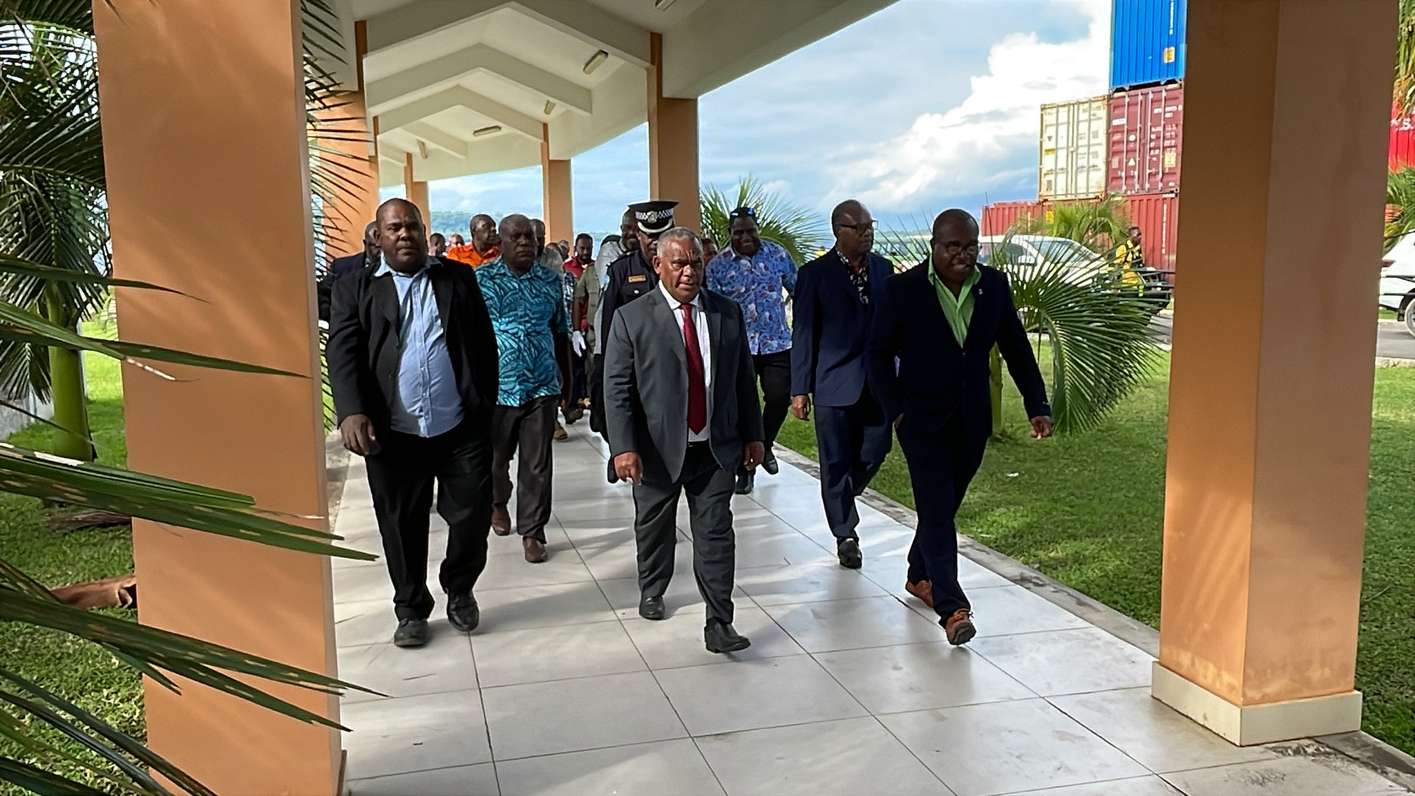 Prime Minister Hon. Jotham Napat, hemi arrive tete long Luganville wetem delekesen blong hem long RVS. SOKOMANU blong mit wetem ol Public Servant mo tu wetem private sector.