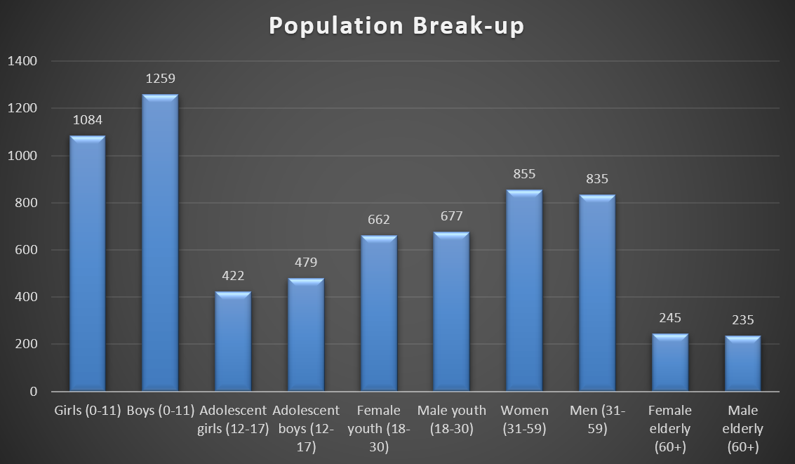 - The bulk of the male population is made up of children, adolescents, and youth.